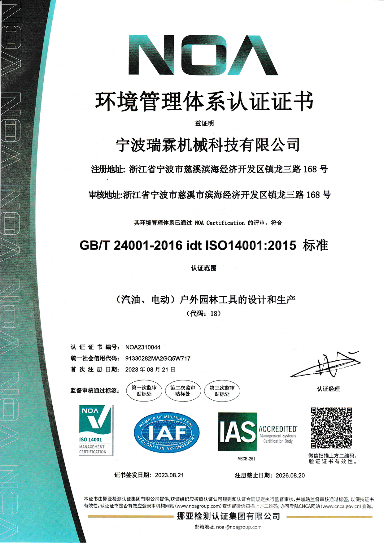 宁波瑞霖机械科技有限公司(简称NGP)是IM网页版登录入口_IM(中国)的全资子公司,成立于2019年4月,位于浙江省慈溪滨海经济开发区镇龙三路168号,占地面积约50000平方米。公司拥有雄厚的技术力量和先进的生产设备,是行业内规模最大的企业之一。NGP集产品设计、开发、生产、销售和服务于一体,主要从事各类汽油、割草机、修枝机、打草机、链锯、吹风机等园林工具的设计研发和制造,产品远销欧洲、美洲、大洋洲等多个国家和地区,同时内销全国各地。作为国家知识产权优势企业,公司注重产品设计,并在此基础上采用先进的精益生产方式,以7S活动规范现场管理,以量身打造的ERP系统整合及有效利用企业资源,以ISO 9001:2015等标准来完善公司质量管理体系,并通过“GS”、“EMC”、“CE”、“UL”等认证来确保产品的安全性和可靠性,已取得各地区出口许可证和自营进出口权。